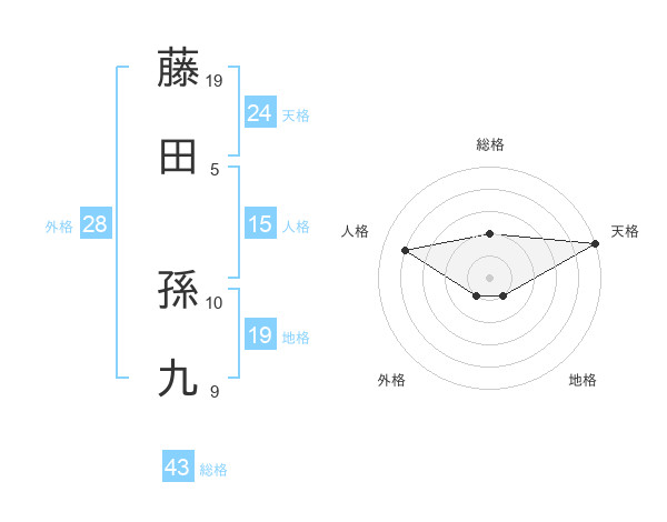 藤田 孫九さんの天格は24画の5点!