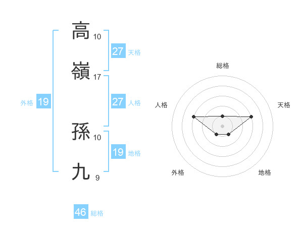 高嶺 孫九さんの外格は19画の1点!