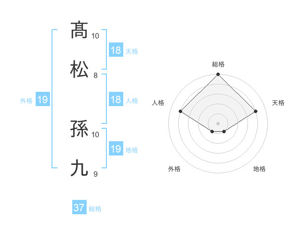 髙松 孫九さんの総格は37画の5点!