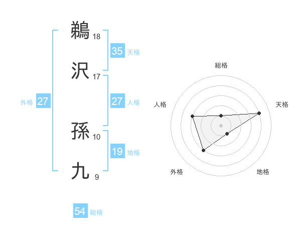 鵜沢 孫九さんの人格は27画の3点!