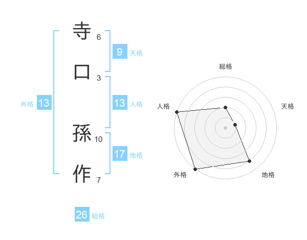 寺口 孫作さんを姓名の画数から五運を鑑定