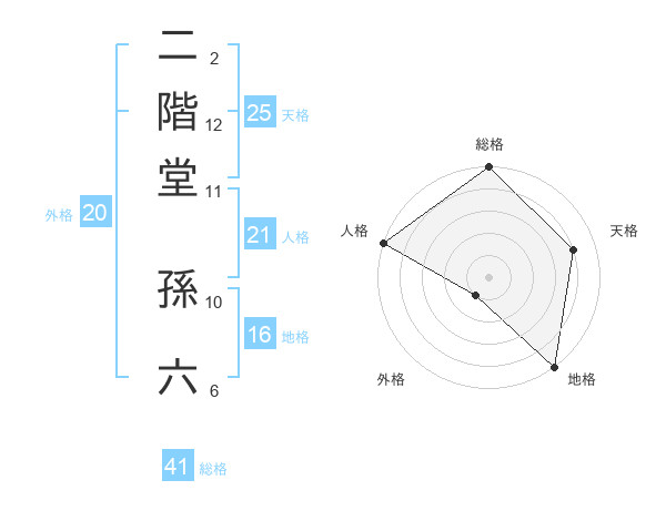 二階堂 孫六さんを姓名の画数から五運を鑑定