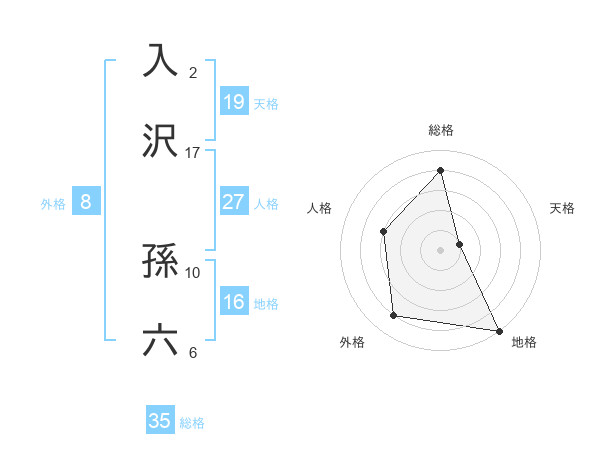 入沢 孫六さんの総格は35画の4点!