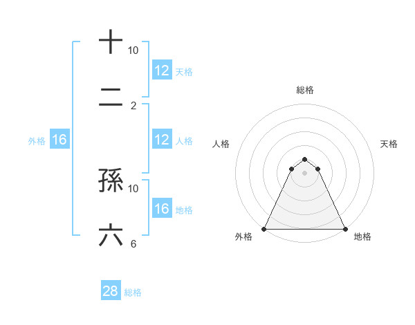 十二 孫六さんの総格は28画の1点
