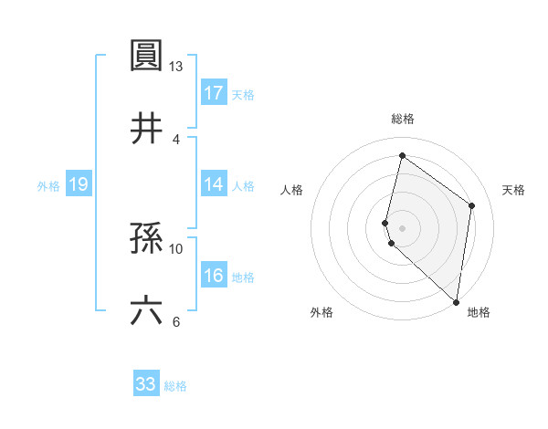 圓井 孫六さんの天格は17画の4点!