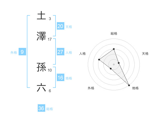 土澤 孫六さんの総格は36画の3点!