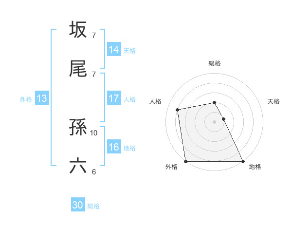 坂尾 孫六さんの外格は13画の5点!