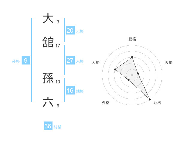 大舘 孫六さんの総格は36画の3点!