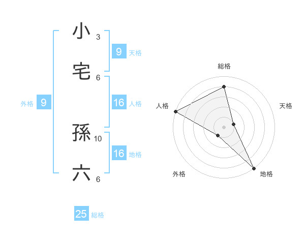 小宅 孫六さんの総格は25画の4点!