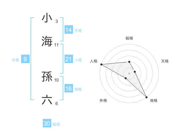 小海 孫六さんの総格は30画の2点