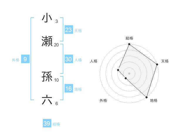小瀬 孫六さんの総格は39画の5点!