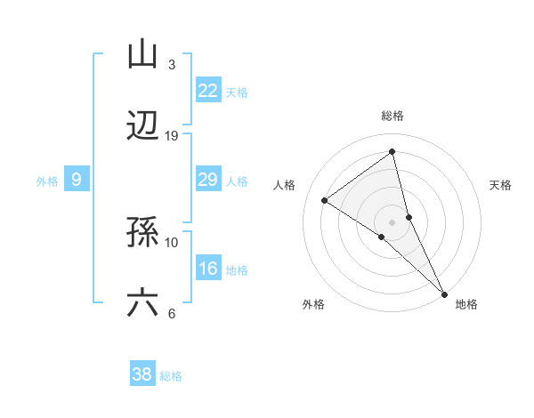 山辺 孫六さんの総格は38画の4点!