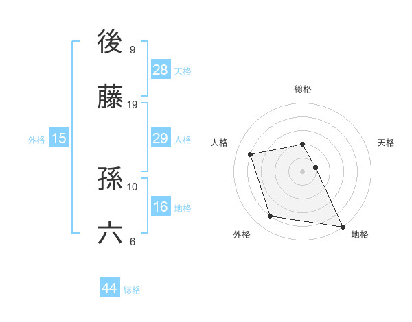 後藤 孫六さんの総格は44画の2点