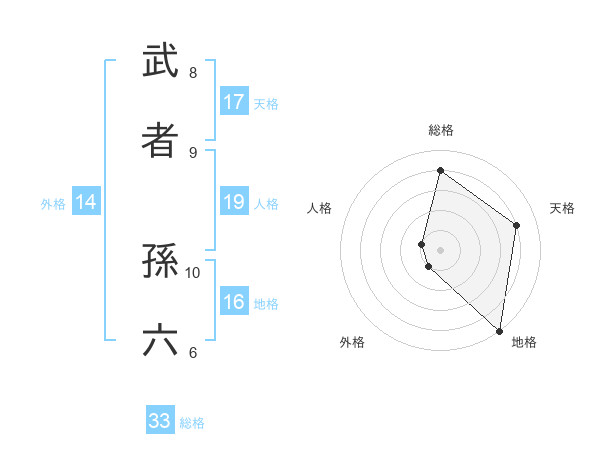 武者 孫六さんの総格は33画の4点!