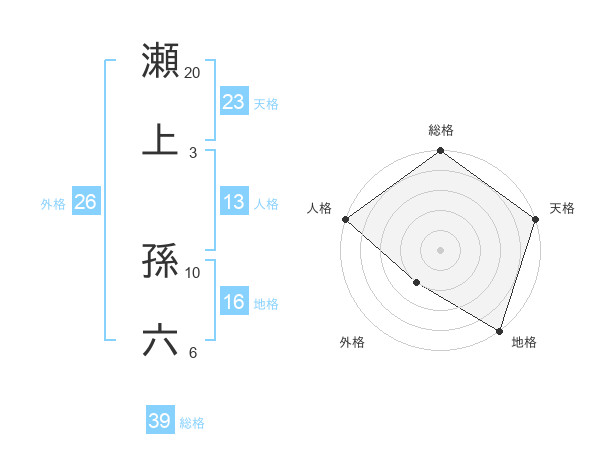 瀬上 孫六さんの総格は39画の5点