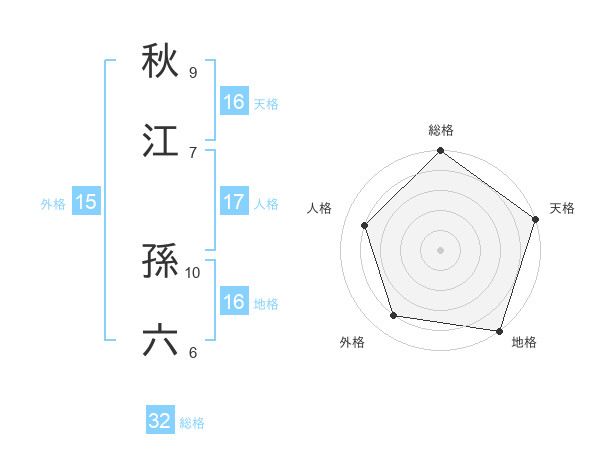 秋江 孫六さんの天格は16画の5点!