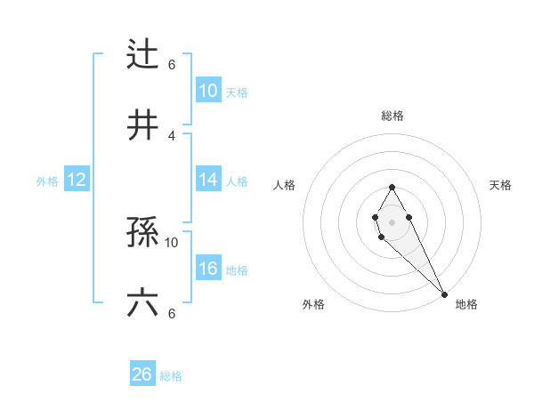 辻井 孫六さんの総格は26画の2点!