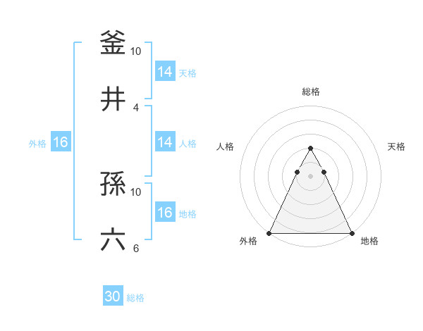 釜井 孫六さんの天格は14画の1点