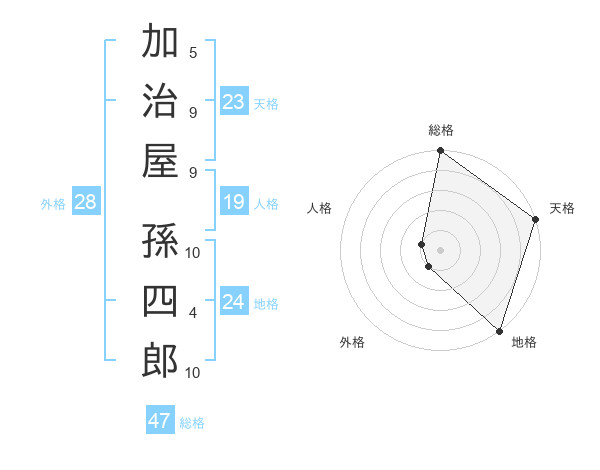 加治屋 孫四郎さんの総格は47画の5点!