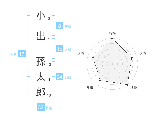 小出 孫太郎さんを姓名の画数から五運を鑑定