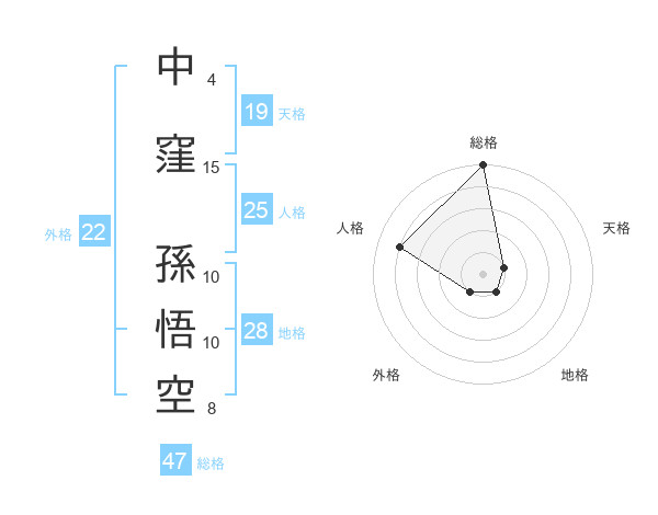 中窪 孫悟空さんを姓名の画数から五運を鑑定