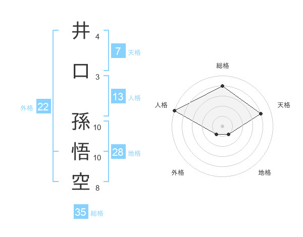 井口 孫悟空さんを姓名の画数から五運を鑑定
