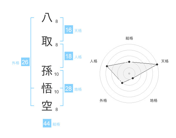 八取 孫悟空さんを姓名の画数から五運を鑑定