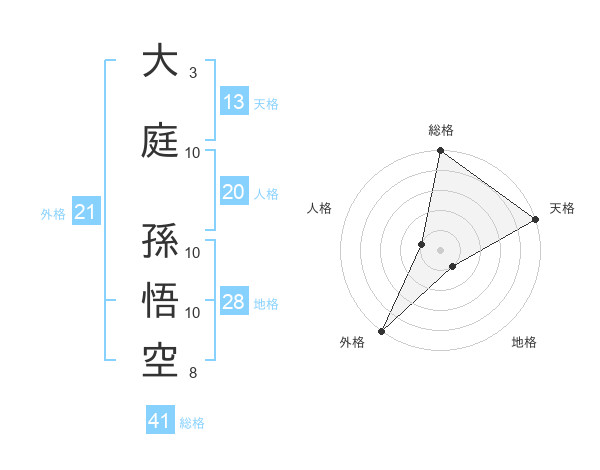 大庭 孫悟空さんの外格は21画の5点!