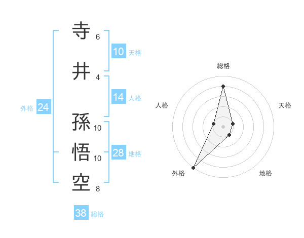 寺井 孫悟空さんを姓名の画数から五運を鑑定