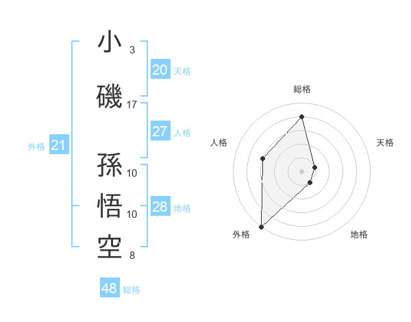 小磯 孫悟空さんの天格は20画の1点!