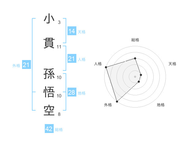 小貫 孫悟空さんを姓名の画数から五運を鑑定