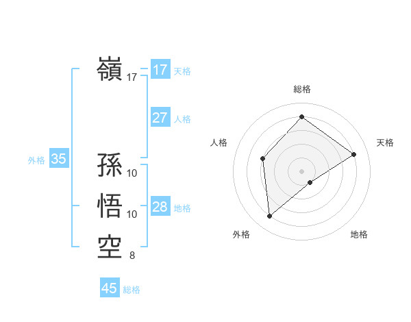 嶺 孫悟空さんの総格は45画の4点!