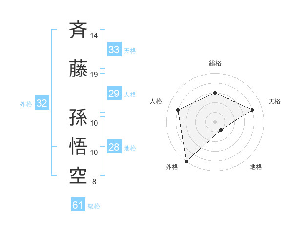 斉藤 孫悟空さんの天格は33画の4点!