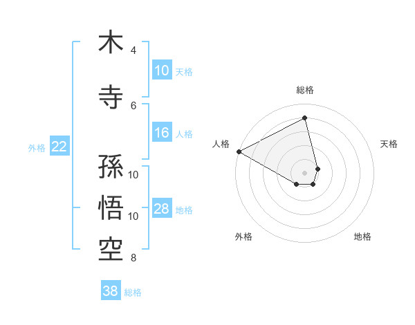 木寺 孫悟空さんの総格は38画の4点!