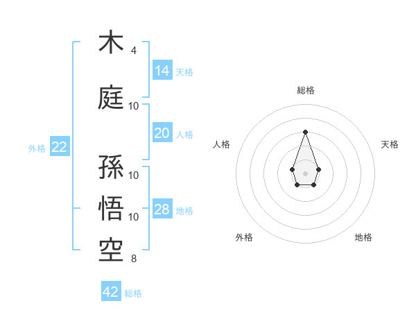 木庭 孫悟空さんの外格は22画の1点!