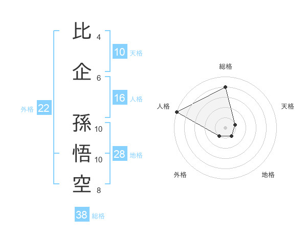 比企 孫悟空さんの総格は38画の4点!