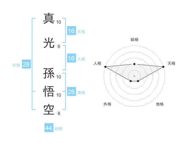 真光 孫悟空さんの天格は16画の5点!