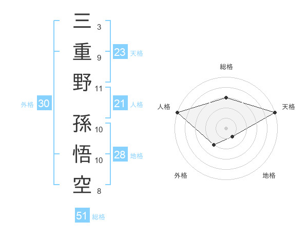 三重野 孫悟空さんの総格は51画の3点!