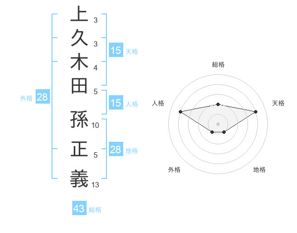 上久木田 孫正義さんの天格は15画の4点!