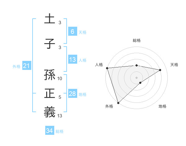 土子 孫正義さんの総格は34画の2点!