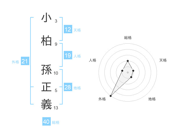 小柏 孫正義さんの外格は21画の5点!
