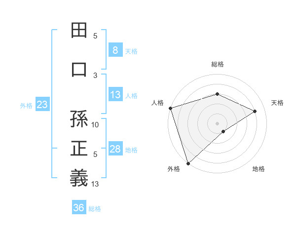 田口 孫正義さんを姓名の画数から五運を鑑定