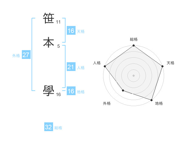 笹本 學さんの天格は16画の5点!