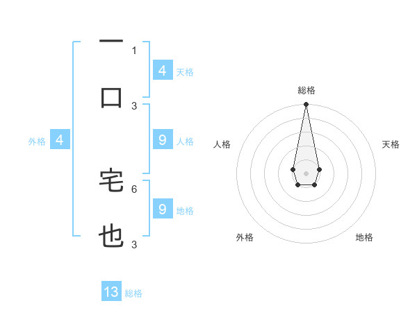 一口 宅也さんの総格は13画の5点!
