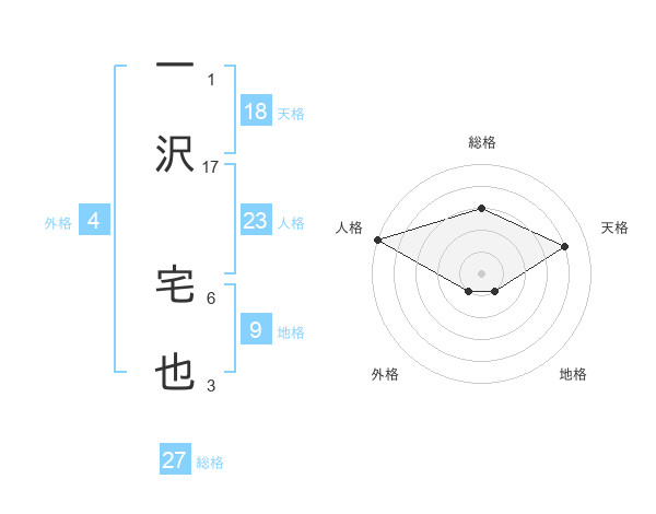 一沢 宅也さんを姓名の画数から五運を鑑定