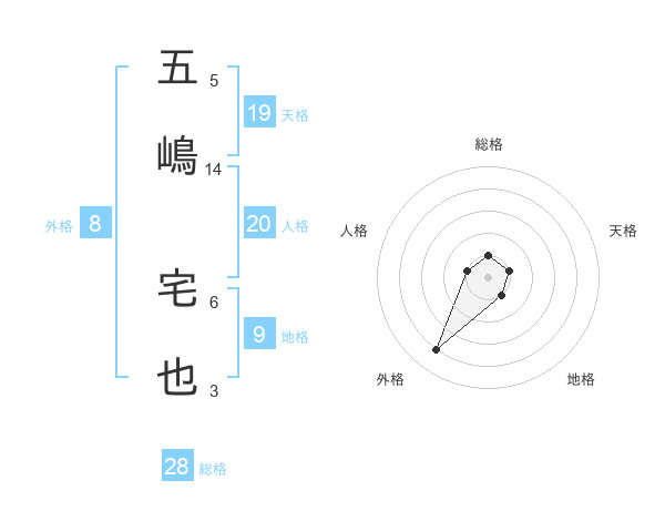 五嶋 宅也さんを姓名の画数から五運を鑑定