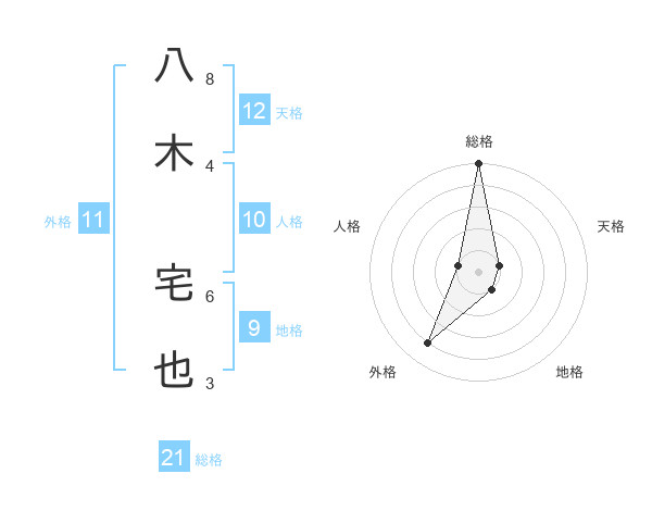 八木 宅也さんの総格は21画の5点!