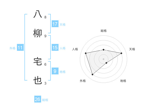 八柳 宅也さんの天格は17画の4点!