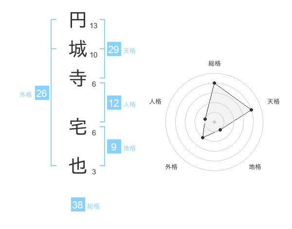 円城寺 宅也さんを姓名の画数から五運を鑑定