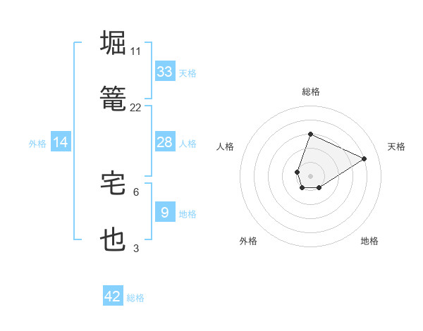 堀篭 宅也さんの総格は42画の3点!
